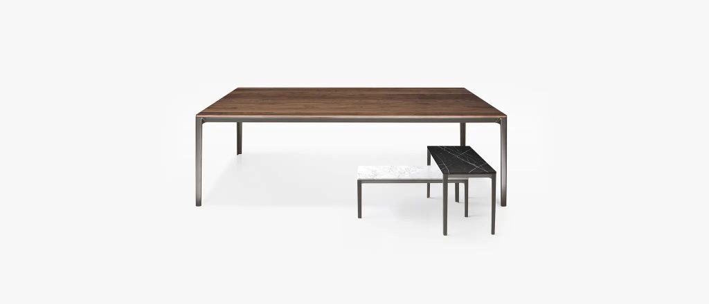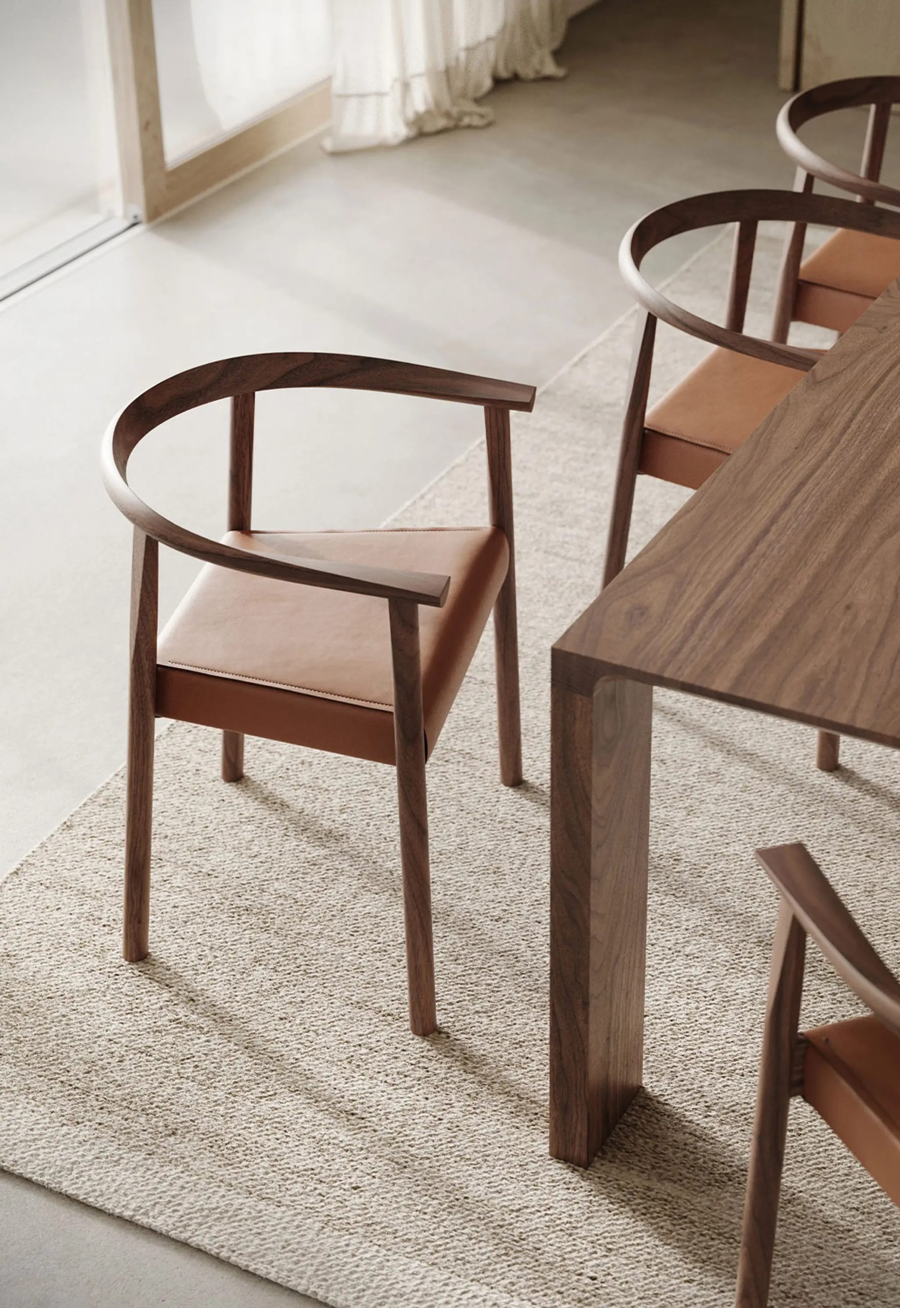 The signature radius bevel on the edge highlights the natural beauty of the wood grain on the solid wood Radii dining table. Available in both White Oak or Walnut, the table balances simplicity of form with solidity of material