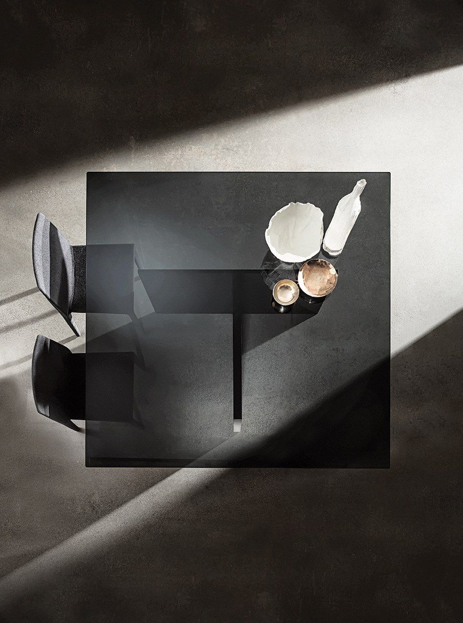 Different geometric shapes and various combinations of materials, create infinite uses and setting possibilities. A simple concept from which arises a complete collection of tables and accessories for the most varied environments and situations.