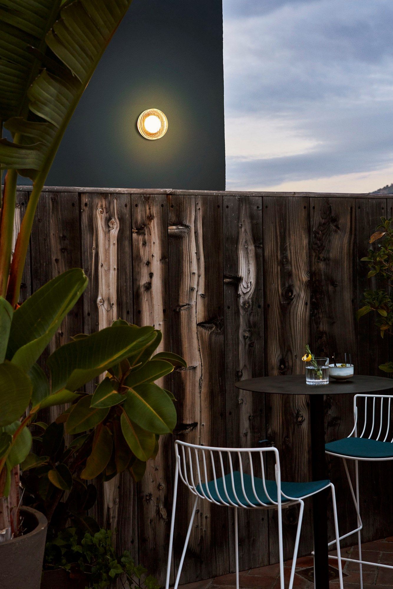 Roc is a compact indoor and outdoor wall lamp with a pressed glass diffuser. Its undulating shade covers the light, blurring it. It doesn’t settle for just providing light, it also manages to create an ambiance: Roc looks like a bright block of ice, and its irregular, almost organic texture beckons to be touched.
