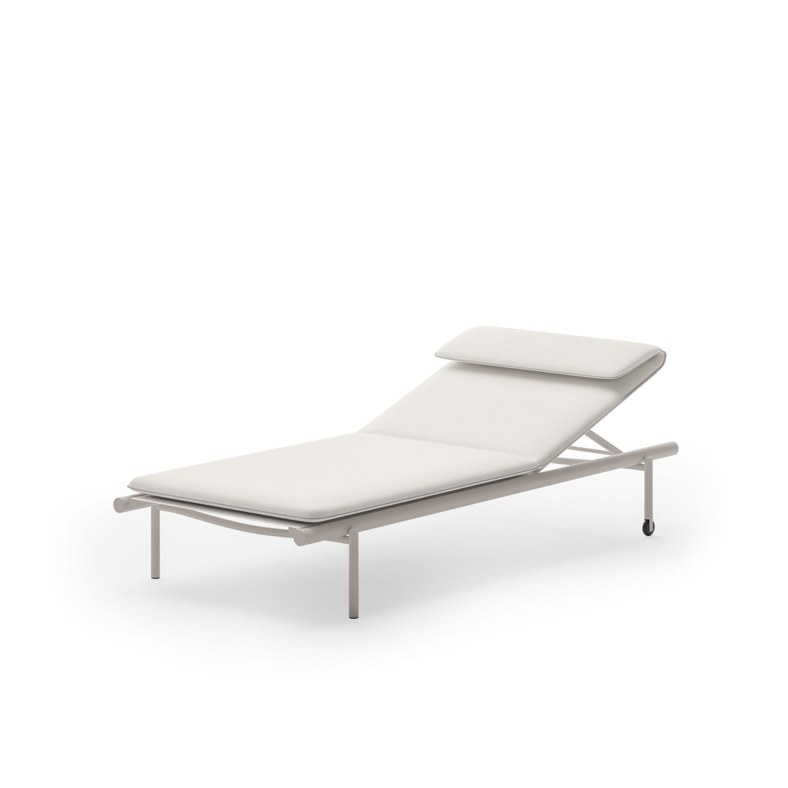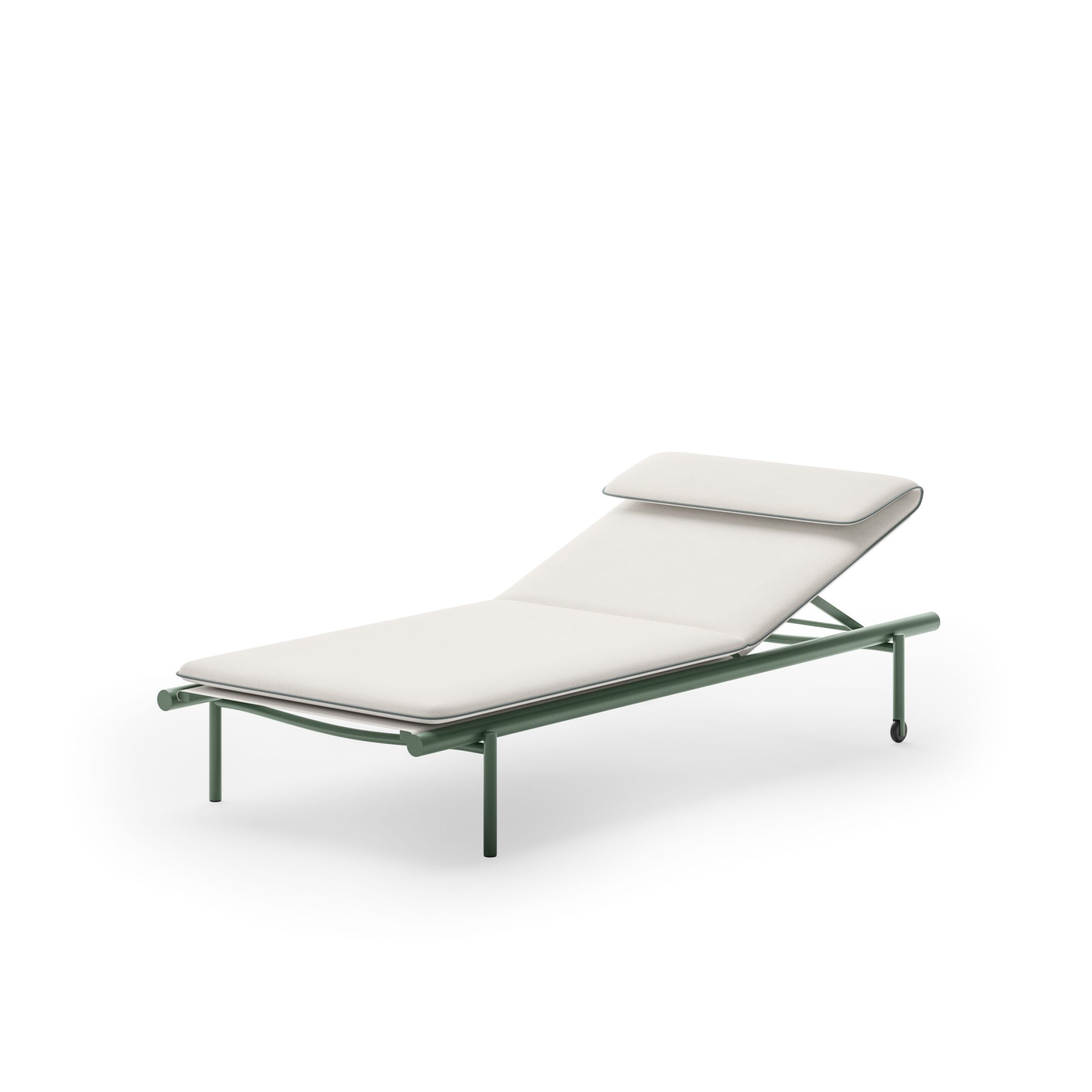 Salò is a stackable and reclining garden lounger made of powder-coated aluminum.