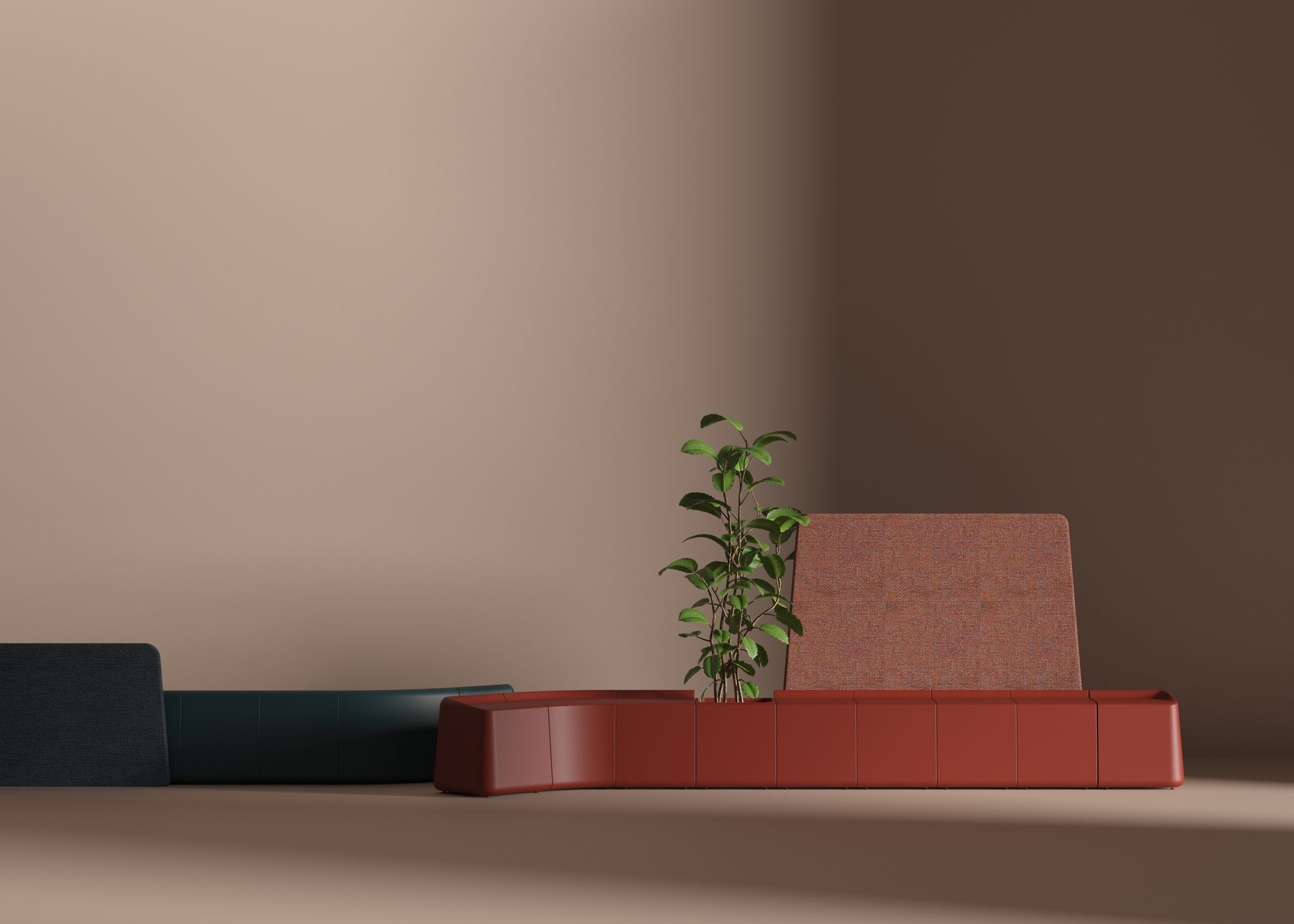 The look of the Sarek collection is doubly fluid and organic, which means that the design of its modules is curved with soft shapes, and the same goes for the arrangements with the modules. Its range of accessories allows to arrange shared spaces of all types with panels, side tables or meeting tables or even workstations. Also, modules can integrate power outlets connected to technical floors. The firm, robust look of the modules contrasts with the soft and pliable feel of their surfaces. This is the surprise factor brought by the Flexyskin technology that allows a comfortable rest. On the other hand, in environments that require flexibility, the weight of the modules is perfect to re-arrange them or to always keep the modules in the same place.