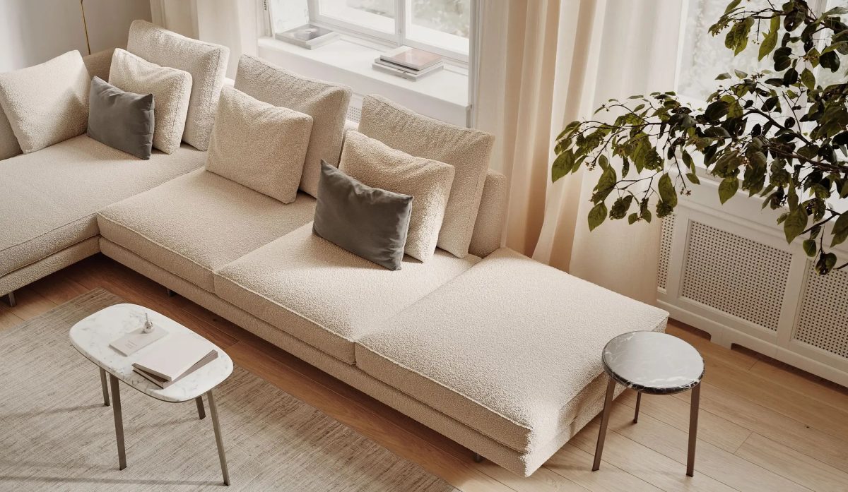 Fall into the layered softness of the Savoy sofa, a luxurious destination in the home