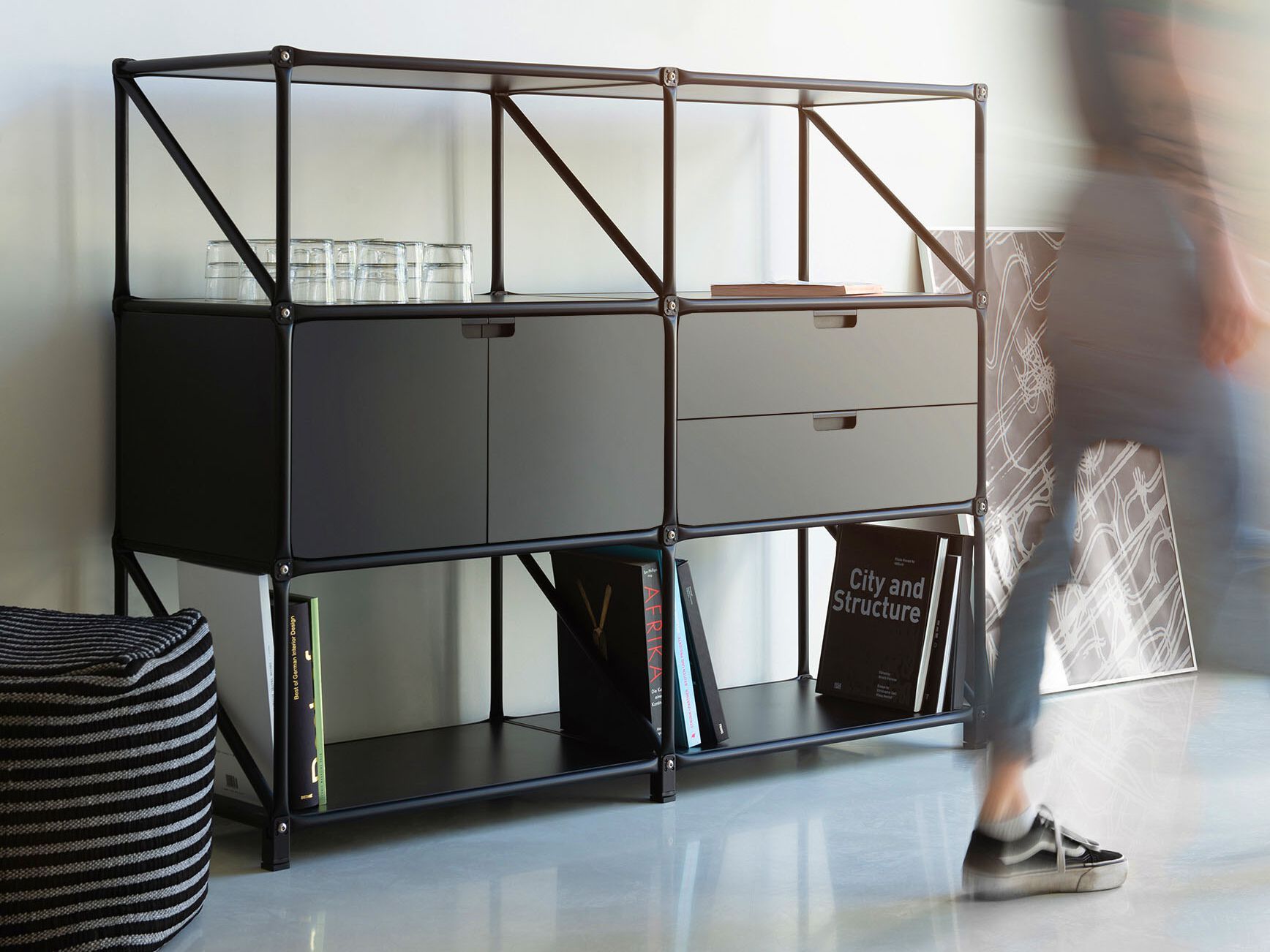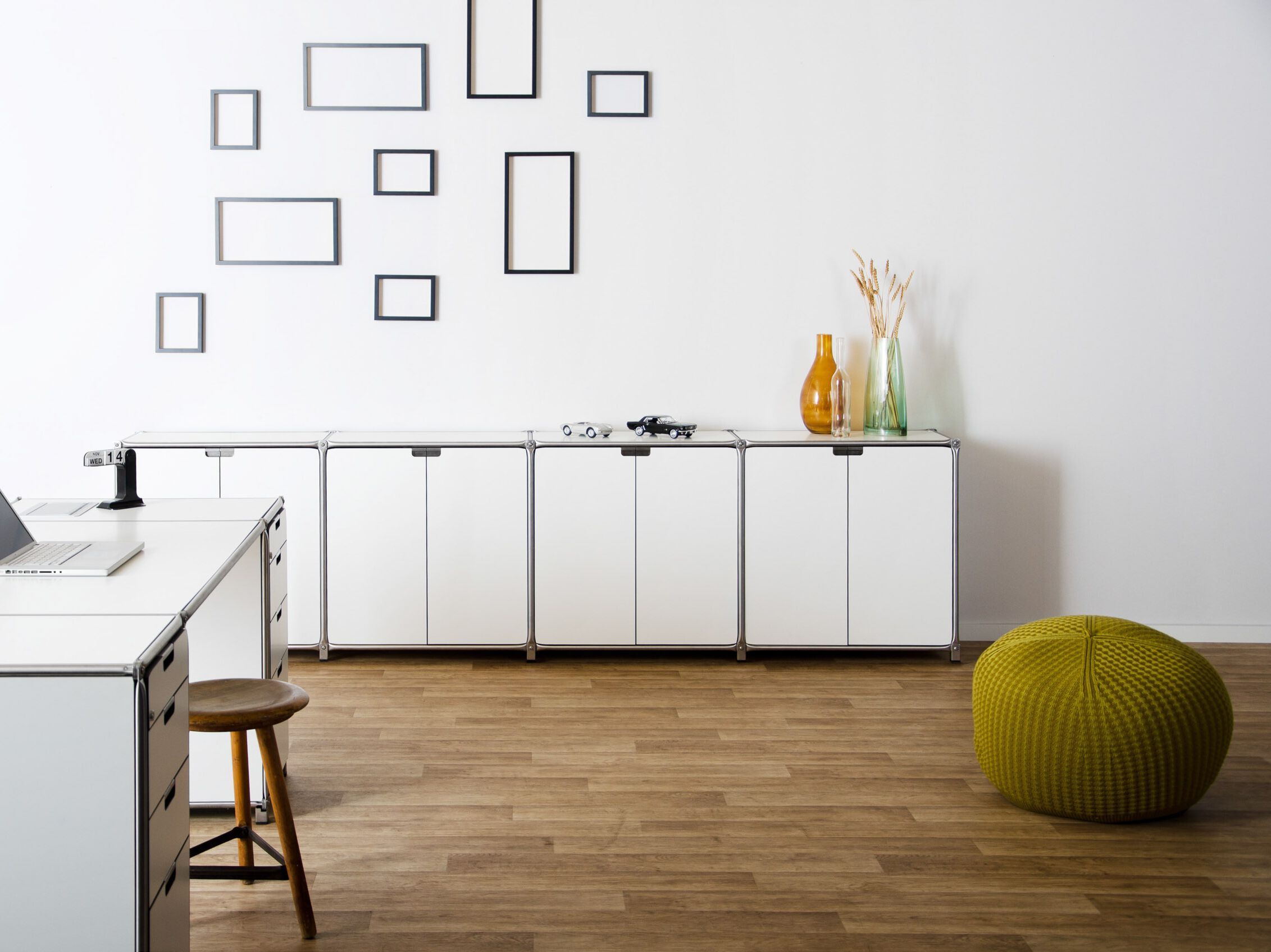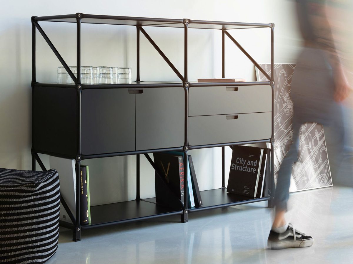 Depending on the space you have available and the use you want to put it to, you can use this modular furniture system to plan such furnishing items as sideboards, shelving and cupboards in precisely the sizes you want.