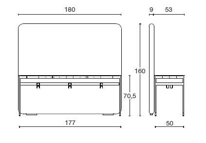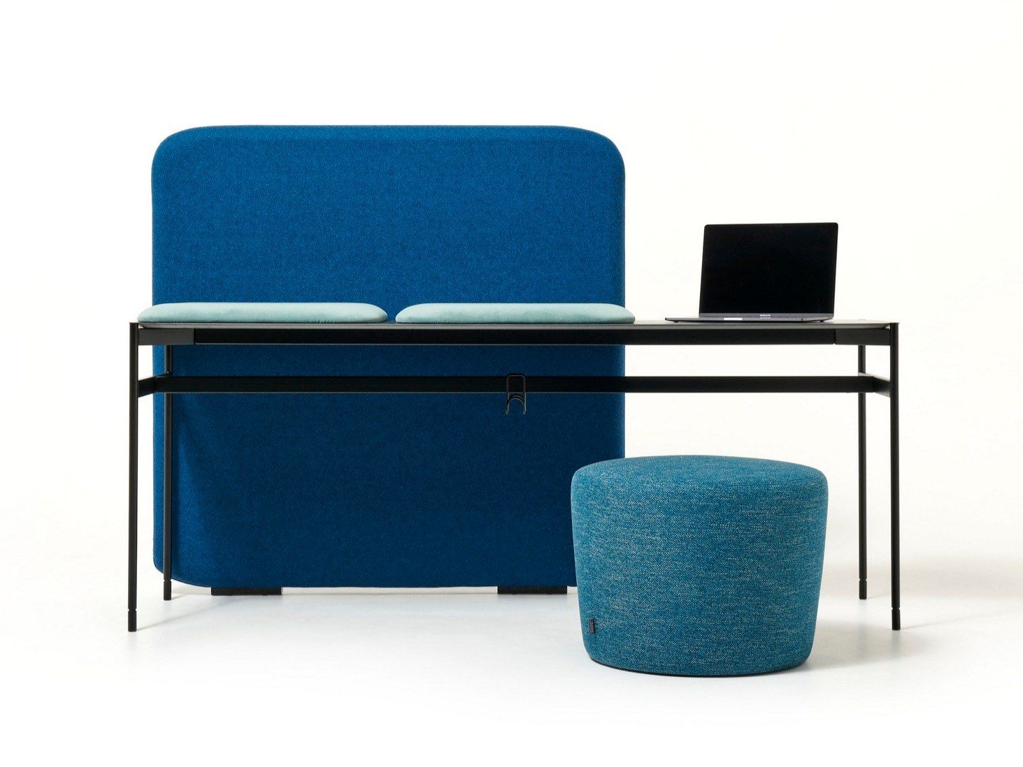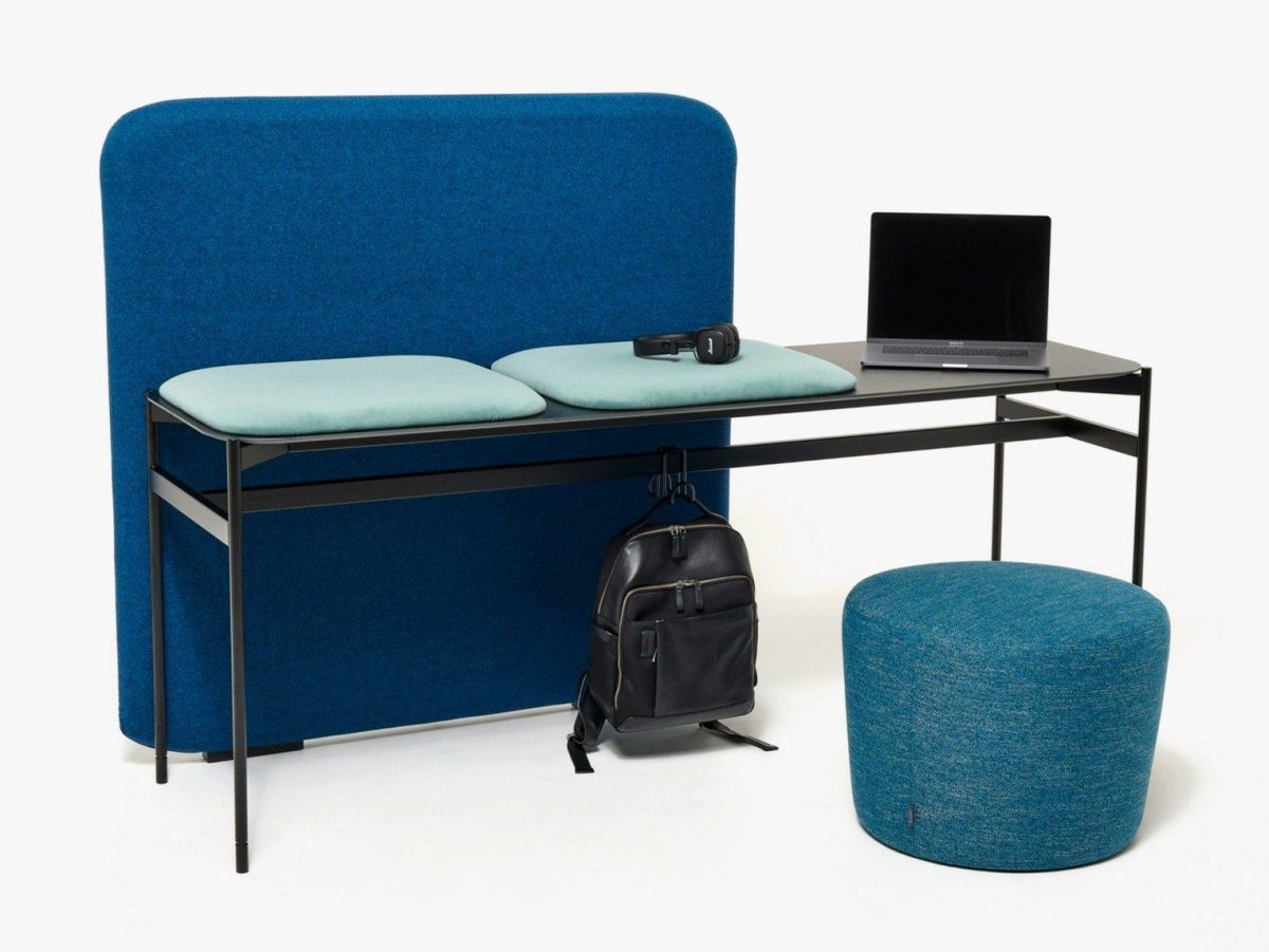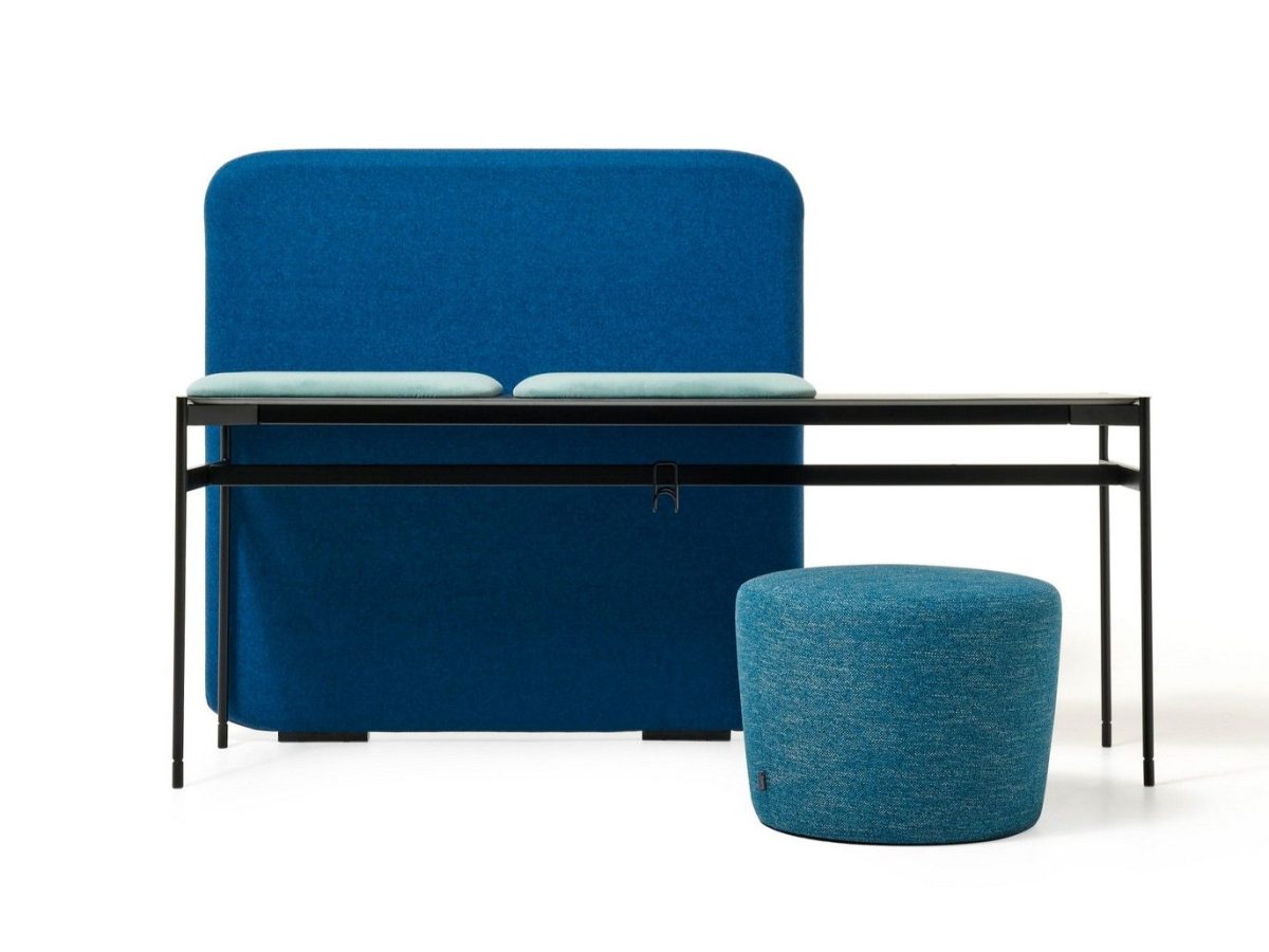 The family also includes three different sizes of upholstered screen to be used either stand-alone or fixed to the frame to divide up spaces. A 70 cm high version of the bench is also available and is suitable as a support surface or as an informal seat, and there is also a 101 cm high table version: all elements work throughout the system.