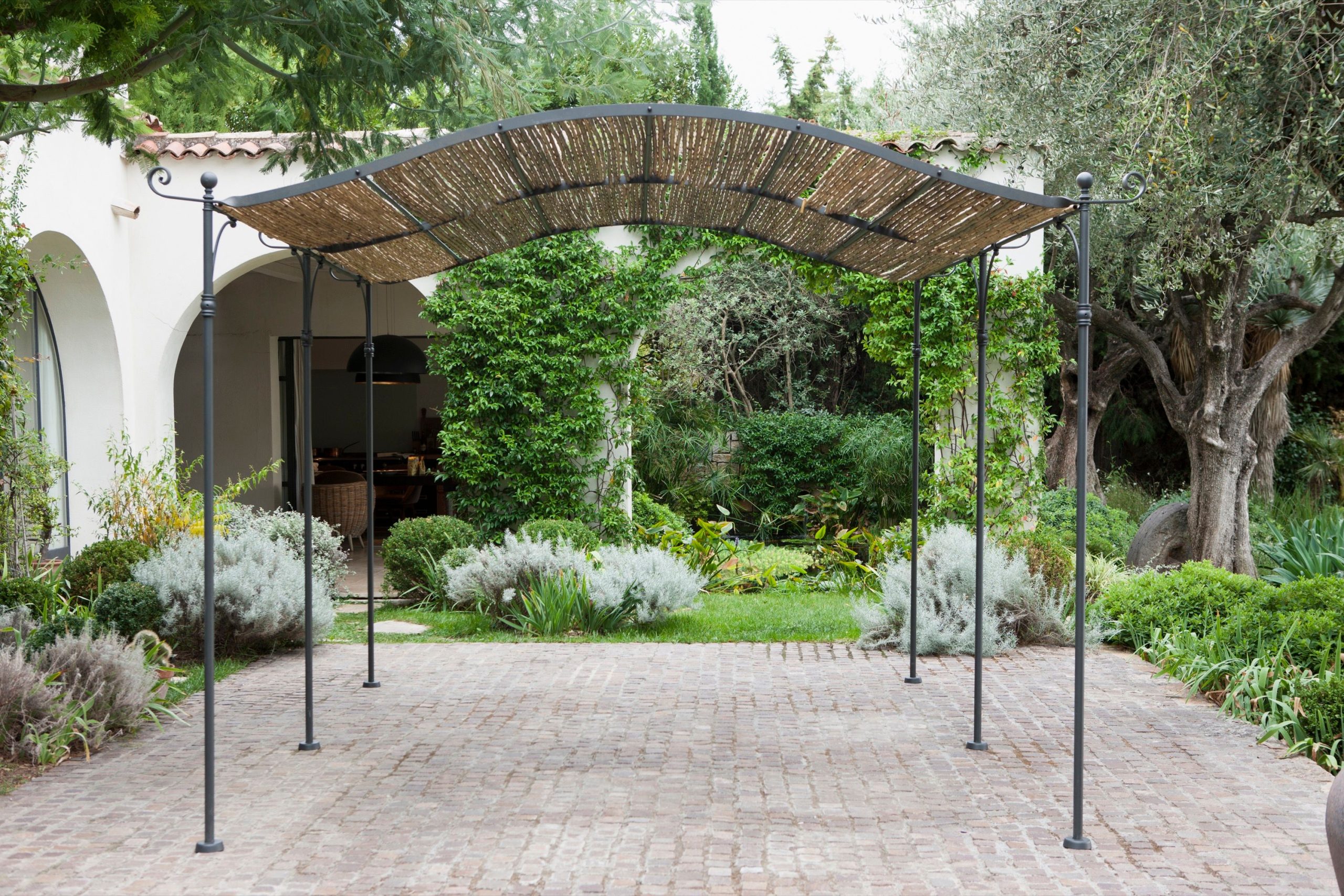 The Solaire collection in powder coated galvanized iron recalls the traditional Italian and Mediterranean style of creating shade, “rooms” in the open, intimate areas, the decoration of outdoor environments. It is composed of a series of freestanding and attached pergolas, a classic pavilion and the roof garden system. It is totally versatile, offering possible “customized” areas to fulfill any furnishing wish or desire. Attached or freestanding Solaire pergolas are available with both flat or curved roofs and can be widened with 186 cm extension modules. Various types of roofing are available: fixed shade, roll shade and bamboo shade. The Solaire pavilion, complete with steel wire as support for climbing plants, is either round or octagonal. It too can be enhanced with grille panels.