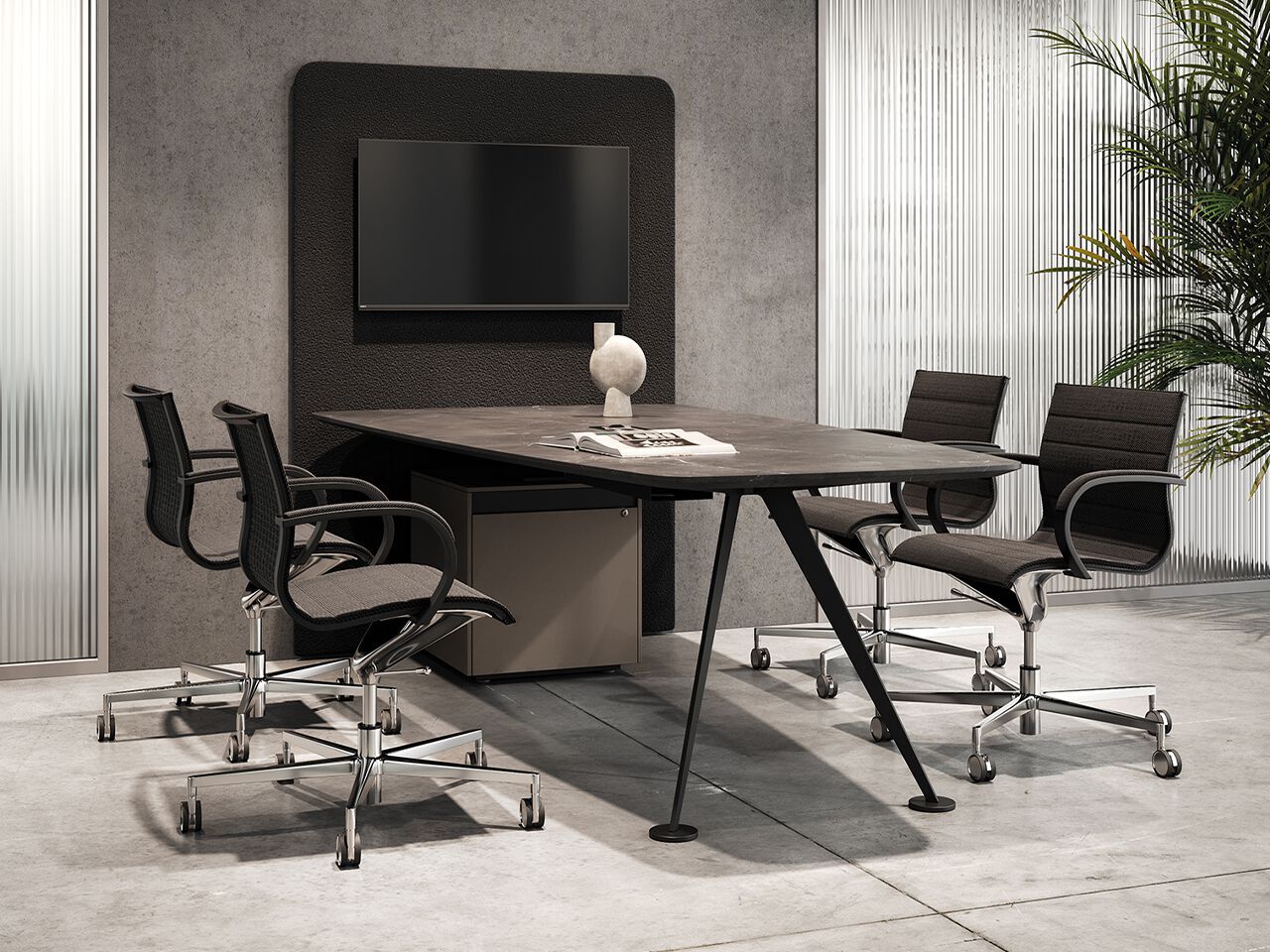 Geometry and harmonious proportions combined with a high quality material design, these are the distinctive features of the Spike collection designed by Giorgio Topan. A collection characterised by the refined profile of the structure, visually light and extremely resistant, the shape of which is obtained from thick steel sheets. The Spike collection consists of executive desks, meeting tables and coffee tables ideal for furnishing a prestigious executive office.