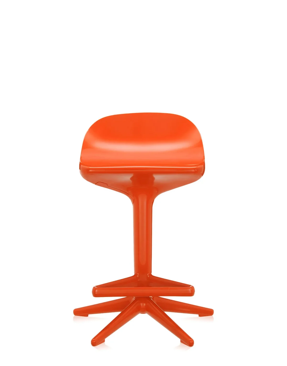 Spoon is an original stool with a shape as elastic in appearance as it is in function. The innovation of Spoon consists mainly in attaching the seat to a central support with a specially reinforced curve to guarantee flexibility and comfort. Furthermore, thanks to a sophisticated design solution, the gas lift pump adjusts the height to between 56 and 76 cm and is perfectly inserted into the stem. In the same ingenious fashion, the handle which regulates the mechanism is perfectly concealed inside the seat.