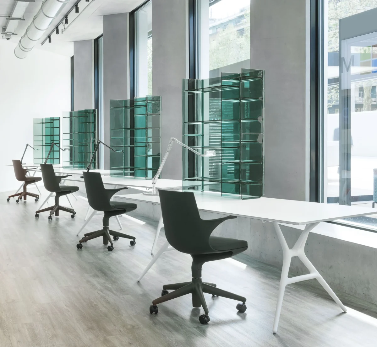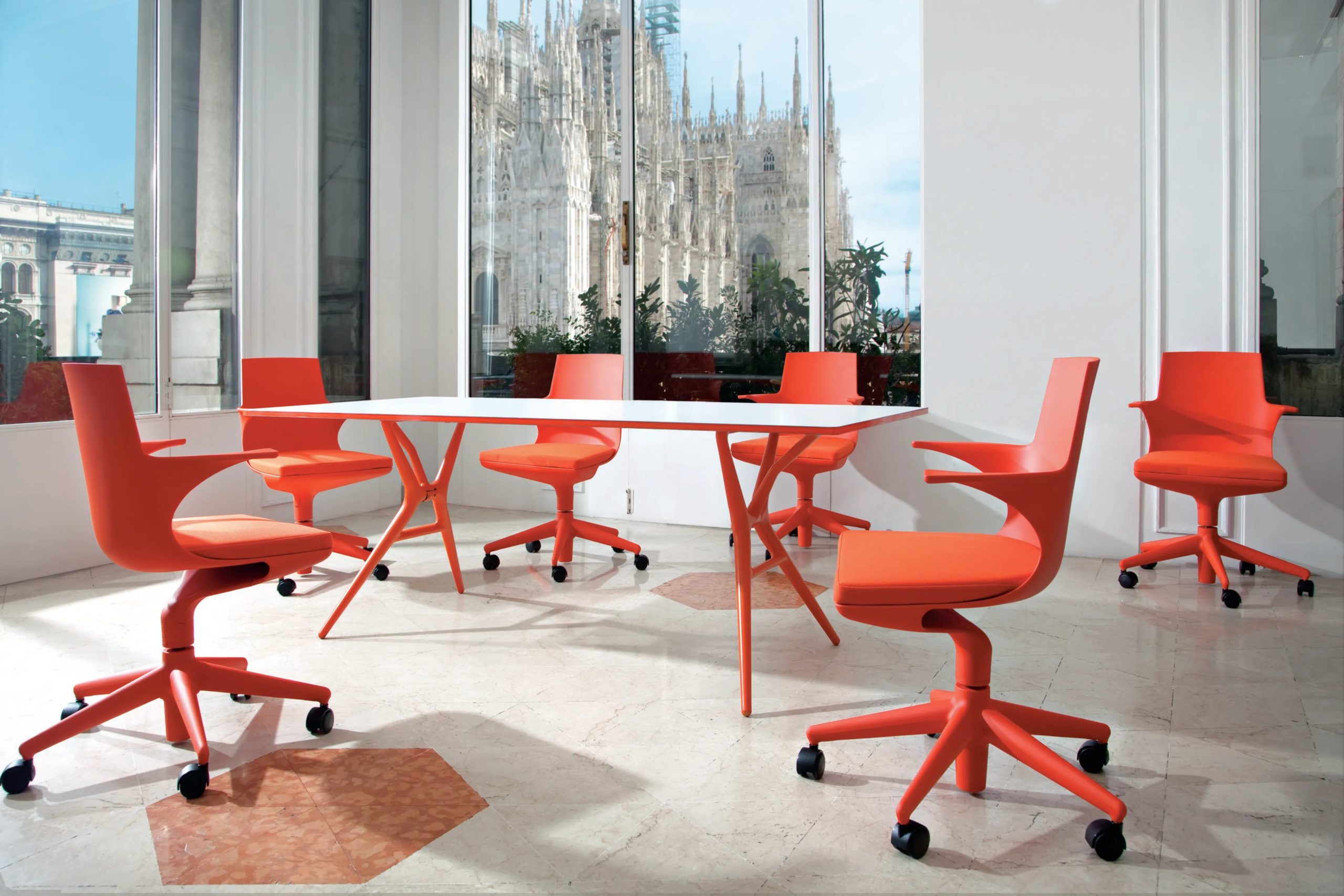 Spoon is a light, folding office table characterised by its extreme lightness and practicality, along with the particular design of the legs. The knee closing mechanism, designed to make the table easy to fold, makes Spoon Table perfect when space is limited and for easy transportation.