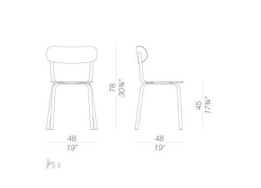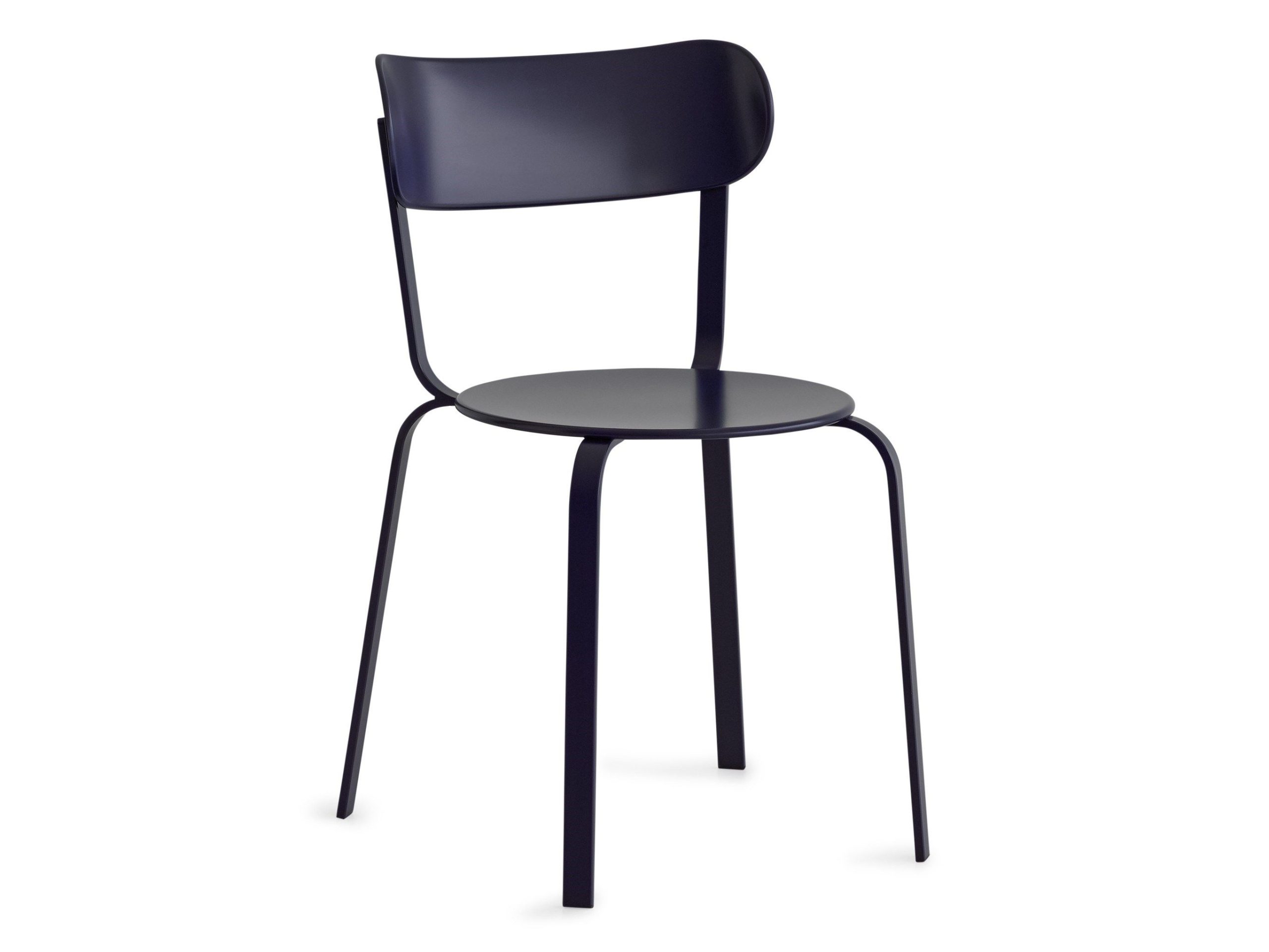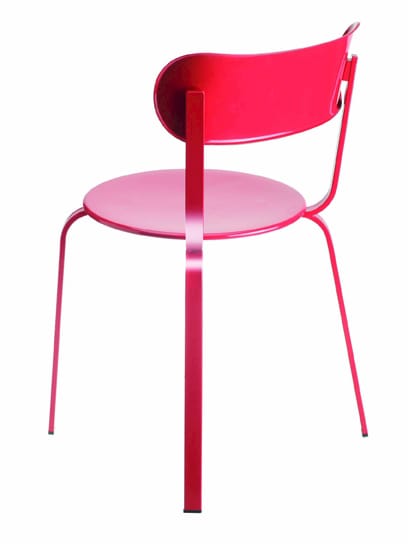 STIL, with its simple lines, made entirely of painted metal and inspired by iconic bistrot chairs, hides highly refined details, such as concealed couplings and a truly comfortable curved back.