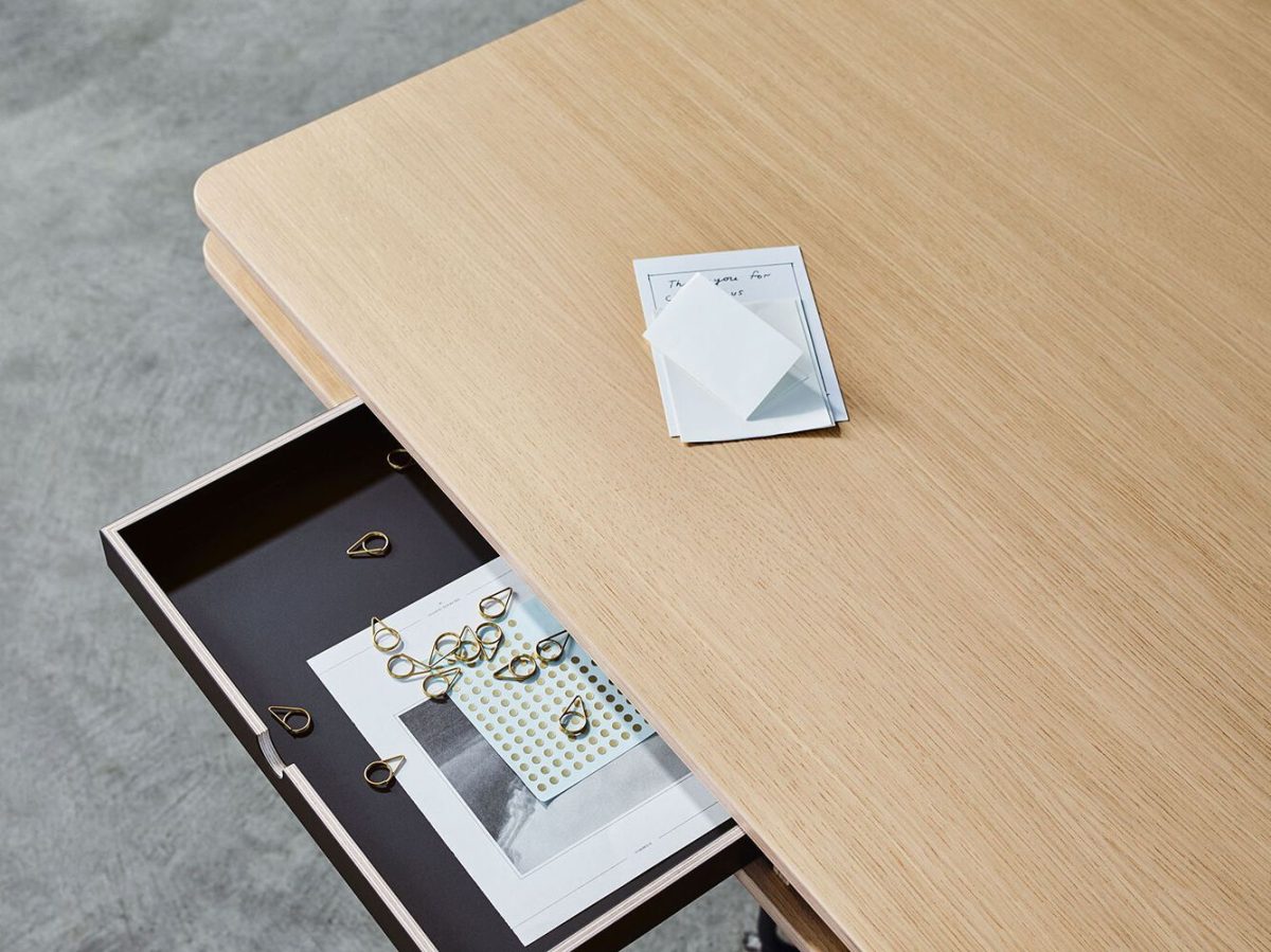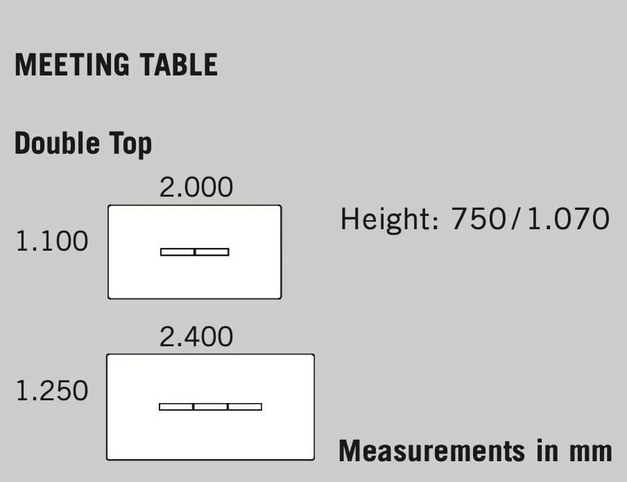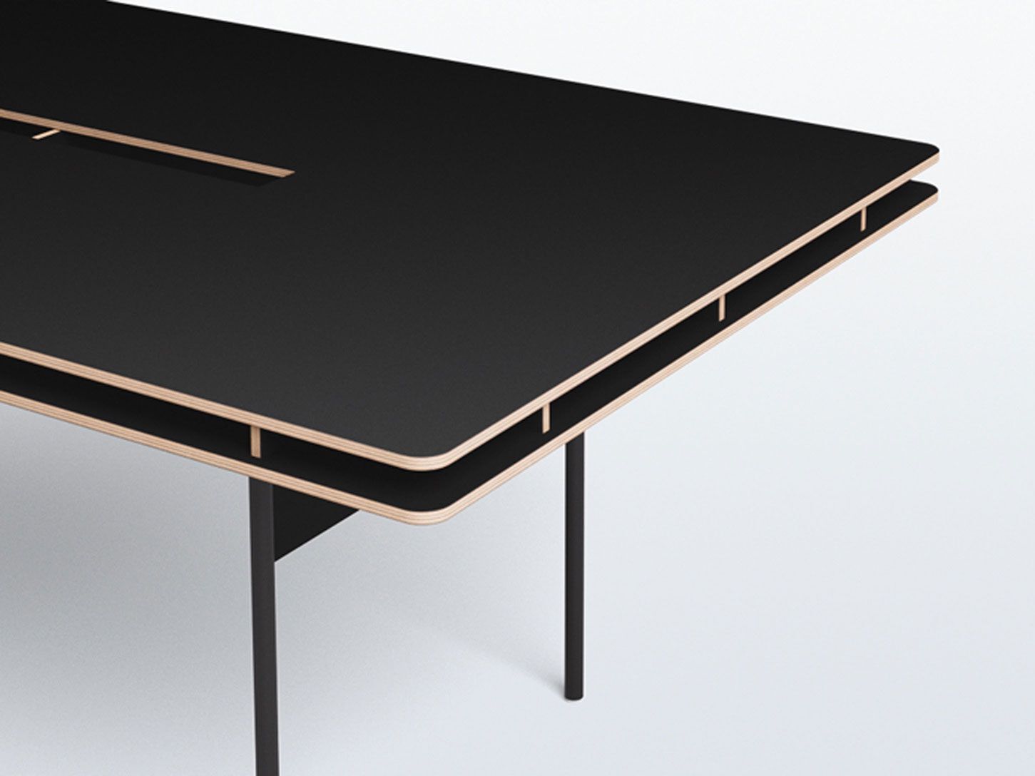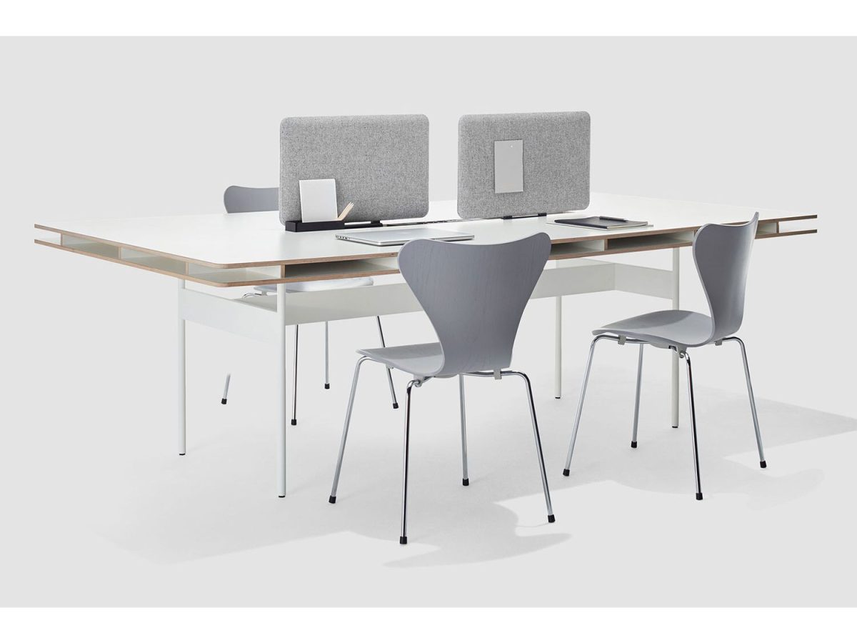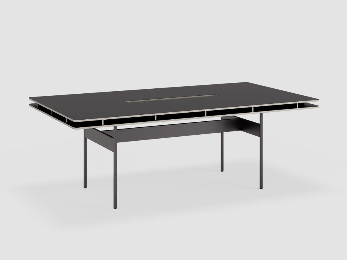 The table frame of the STUDIO FACT meeting table embodies modern minimalism and a clear design language. A design furniture for those who value aesthetics and refuse to compromise on functionality. The FACT meeting table features a specially designed H-shaped frame, ensuring comprehensive legroom and ideal seating comfort from all sides. In the characteristic Double Top of STUDIO, work and private life merge. The table is only available with the Double Top and is always equipped with an organizing rail. Additional storage space between the two tabletops provides room for personal items and a clever solution for cable management. An organizing rail with various accessories also provides quick access to work tools. The STUDIO FACT meeting table can be directly combined with the shelving system and, along with team settings for up to four employees, creates a smart workspace configuration. With the matching STUDIO accessories, the table is customized according to individual needs.