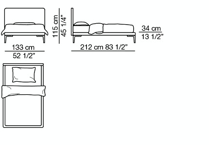 The Suite bed has balanced volumes, the base is raised off the ground and the upholstered headboard makes it comfortable and suitable for any residential and hospitality space