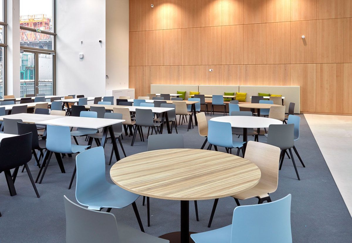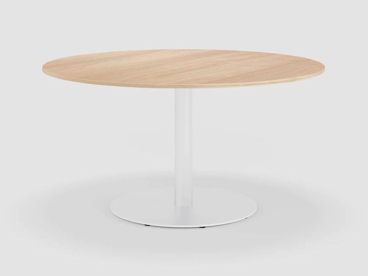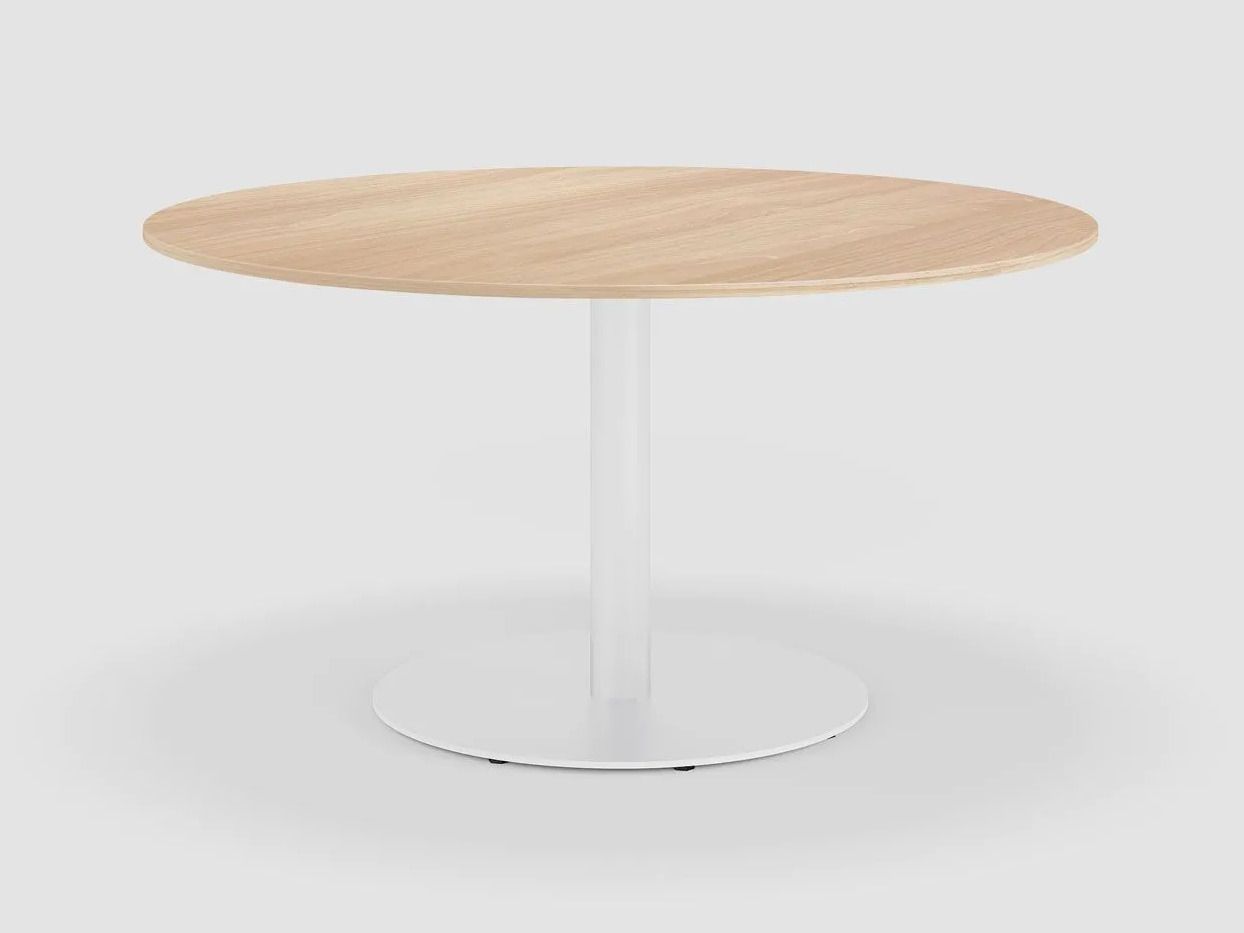 The T-MEETING column table features a discreet and classic design. It can be used in all areas and zones of the office where communication and collaboration are essential, such as meeting areas or more informal spaces like lounges, central zones, or cafeterias. The T-MEETING column tables are available in various sizes, colors, and surface materials. There are five different tabletop shapes to choose from: square, rectangular, round, oval, and figure-eight. The table can be equipped with one or two columns and is available in different heights for sitting. For modern cable management, a wide range of options is available to suit specific needs.