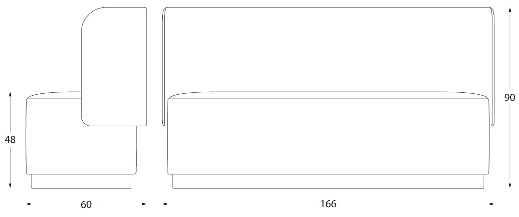 High-backed sofa, plywood structure. Upholstered onto the frame. Webbed seat. Varnished or lacquered wooden plinth.