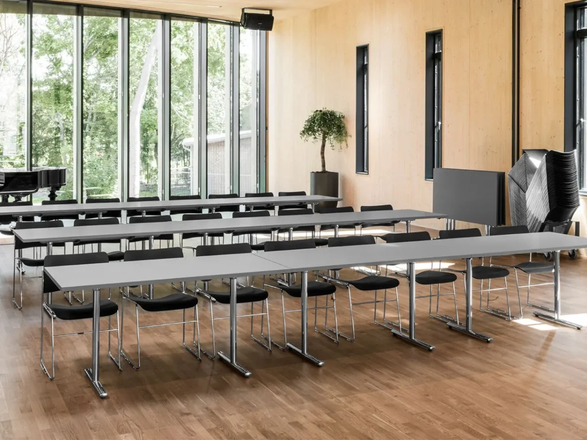 Tempest stands as the pioneering solution for optimizing space in versatile settings such as dining areas, meeting rooms, training facilities, and conference halls. This remarkable system offers an extensive range of options, catering to various needs, whether you require a large conference table, a flexible modular meeting table, a cozy lounge table, or a stylish high bar table.