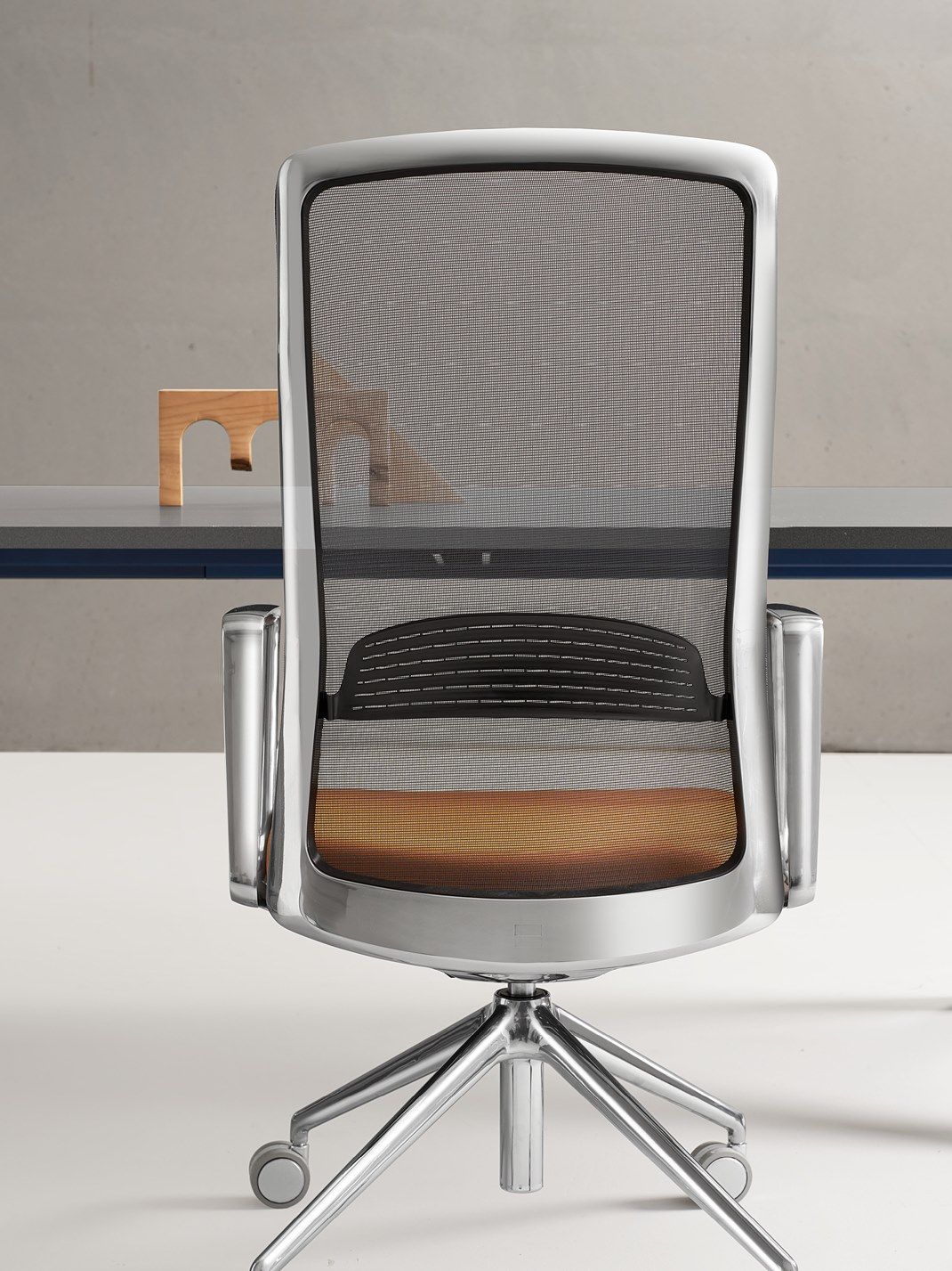 That’s It is an armchair with elegant and light shapes, its die-cast aluminum frame (and plastic new ones) combines lightness, solidity and a special hi-tech design. That’s It incorporates all features of operative chairs at high level. This wonderful model is available in two versions: alluminium or plastic frame. Both version can provide a net or soft backrest. The alluminium frame can be also painted in white, black, bronze and toupe colors.