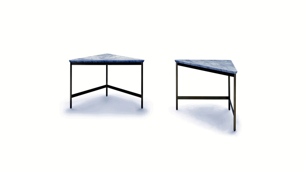 The collection is composed by small tables available with circular or square top with a sturdy steel base, by two service small tables defined by their elevated tabletops circular or rectangular that can be easily repositioned, by a shelf unit and a small table with drawer in a sturdy wooden construction, available also with marble top