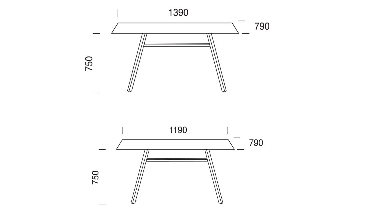 Tower 209 is a table with steel base and laminated wood top. Available in the dimensions: 1390x750mm and 1190x750mm.