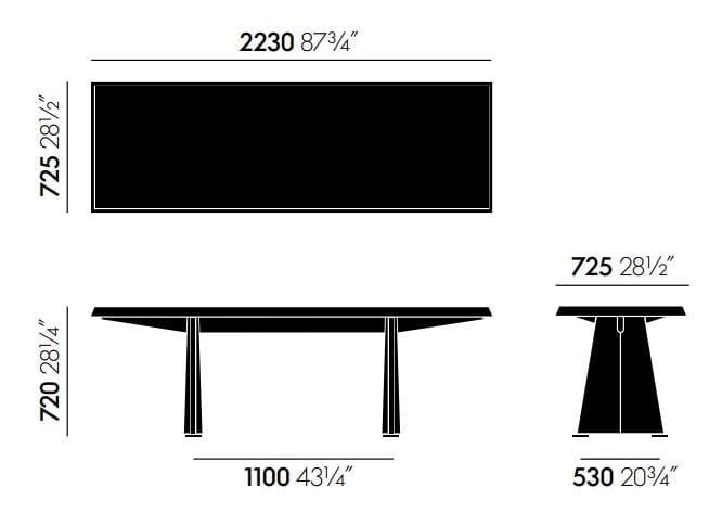 Like the Antony chair, the Trapze table was originally developed for the Cit Universitaire in Antony near Paris and numbers among the final pieces created by the French constructeur Jean Prouv in the area of furniture design. The name of the table refers to the distinctive shape of its paired legs, which are constructed from bent sheet steel. Together with the thick, obliquely canted edges of the table top, they emphasise the solid appearance of the construction.
