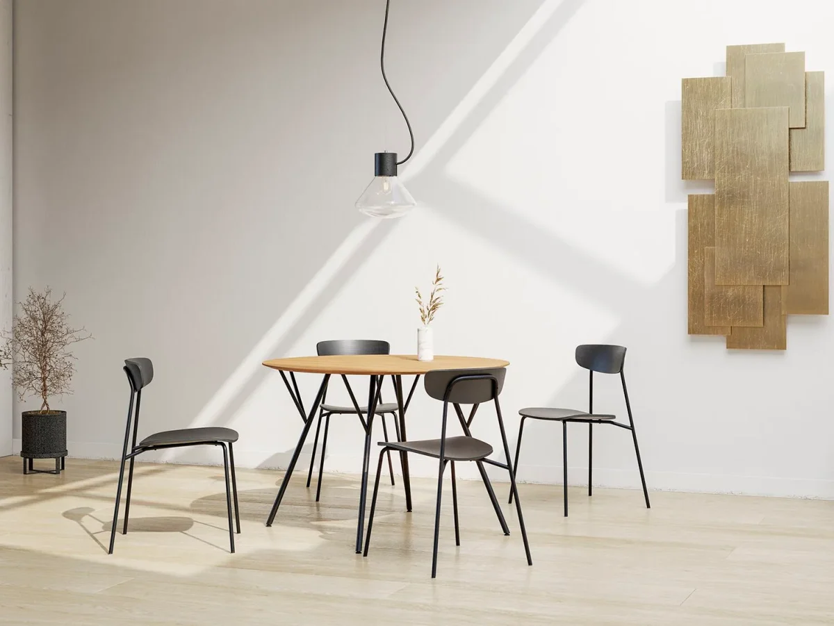 The TRIVI chair, designed by Czech designer Martin Foret, captivates with its highly minimalist appearance. Although lightweight, its construction is designed for long and intensive use. The ergonomically shaped design seat and backrest are made of oak veneer and promise superb seating comfort. To make your experience even more comfortable, the chair seat can be upholstered.