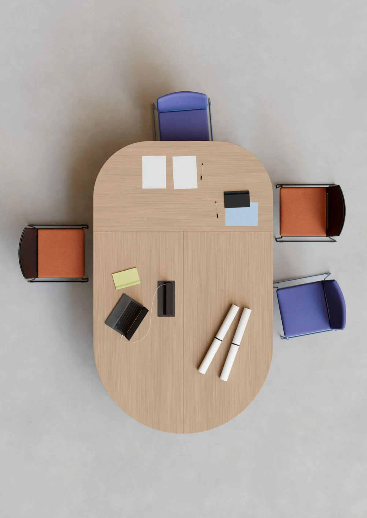 The Ulisses AN table on castors with flip-top and rounded corner combines multifunctionality and aesthetic elegance. This table was designed by IBEBI to offer a smart solution in all situations where dynamic and optimised space management is needed: With a simple action, Ulisses moves effortlessly and once stowed it takes up minimal space. It is ideal for preparing meeting rooms, conference rooms, educational spaces and environments dedicated to events. It is the perfect table inside an office to easily transform a single table into a meeting table, capable of accommodating several people and facilitating a discussion. In fact, like the other tables in the Ulisses family, the model with a round corner can also be linked with other worktops to create a large oval table. Customisable with numerous finishes, this table on castors with flip-top features a sophisticated design, where the die-cast aluminium foot adds a further touch of aesthetic refinement. The Ulisses top is available in different lengths and depths.