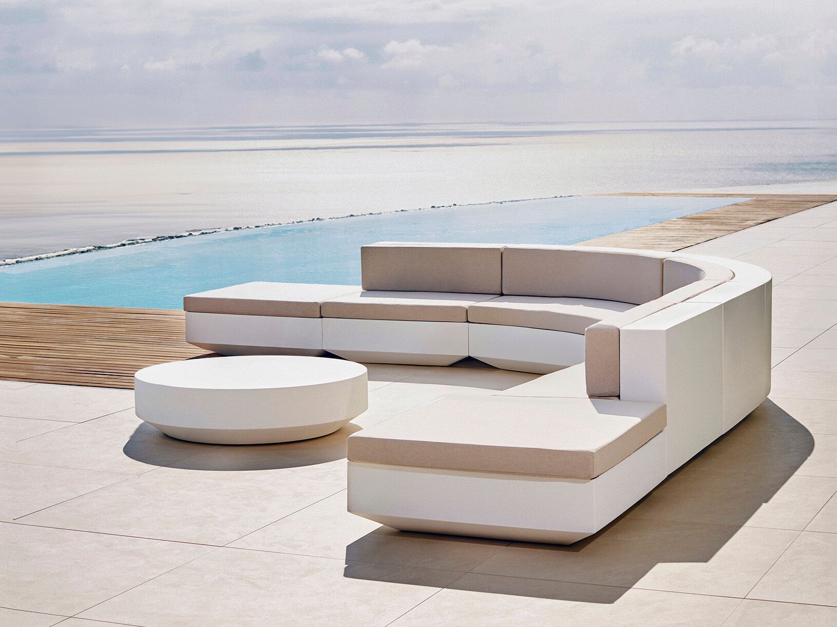 Made of polyethylene resin by rotational moulding, the VELA modular sofa is 100% recyclable and suitable for indoor and outdoor use. VELA is available in different finishes.