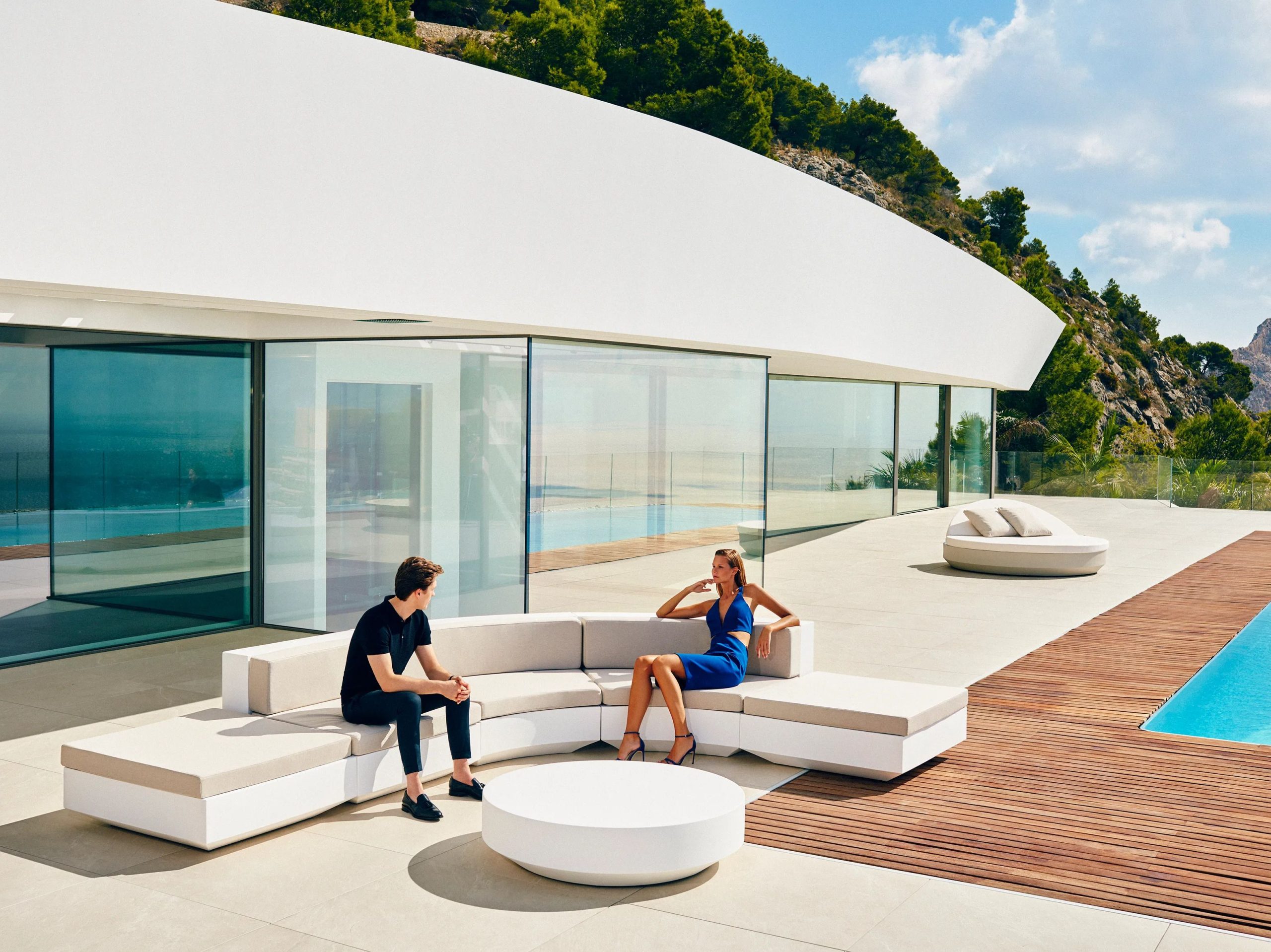 The VELA collection, designed by Ramón Esteve for Vondom, offers a wide range of outdoor furniture and planters that combine the comfort and warmth of indoor furniture. With a design that balances proportions and geometric lines, VELA transforms any space into a cosy and elegant retreat.