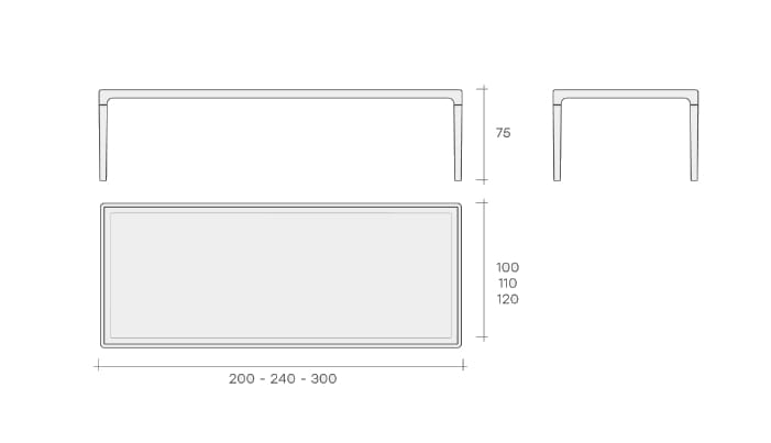Vertige is a table with 8 mm tempered glass top; solid wood structure available in Tobacco or Heat-treated Black finish.