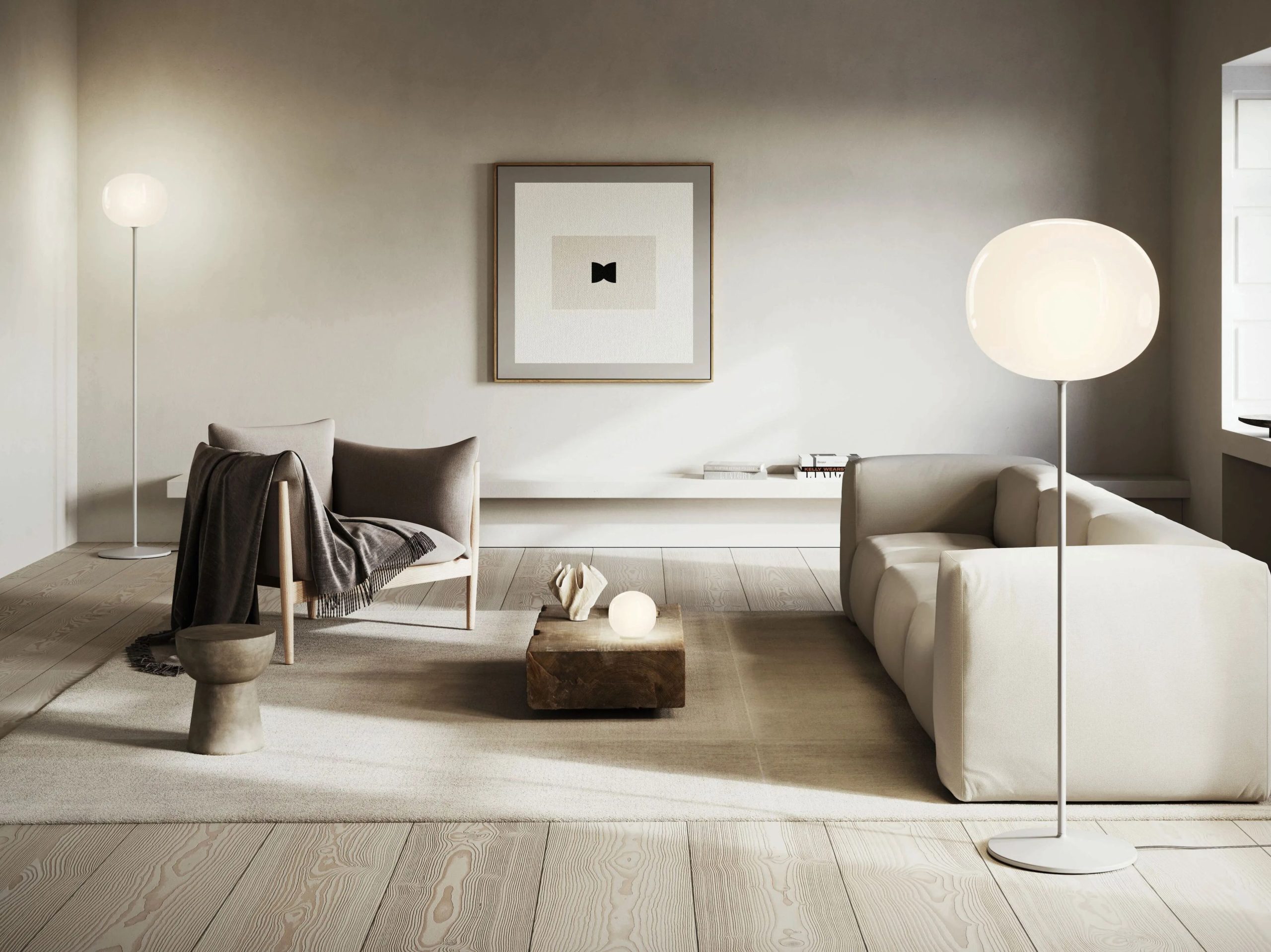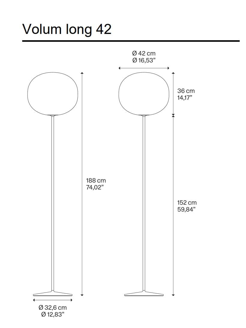 Volum celebrates the elegance of simplicity with a series of lamps that, in their similar yet intimately different shapes, complement each other in poetic compositions that narrate an all-round illumination, tailored for various functions and uses. Behind its apparent simplicity, the collection designed in collaboration with architectural firm Snøhetta conceals a complex technical achievement, paying homage to the ancient glassblowing technique that gives life to naturally imperfect shapes. The blown glass spheres of the diffuser, available in diameters of 14, 22, 29, and 42 cm, feature a glossy white finish that evenly radiates light. The Volum family includes various models – cluster suspension, ceiling, wall, table, and floor lamps – that enhance any space and situation, whether used individually or in compositions to create original lighting solutions.