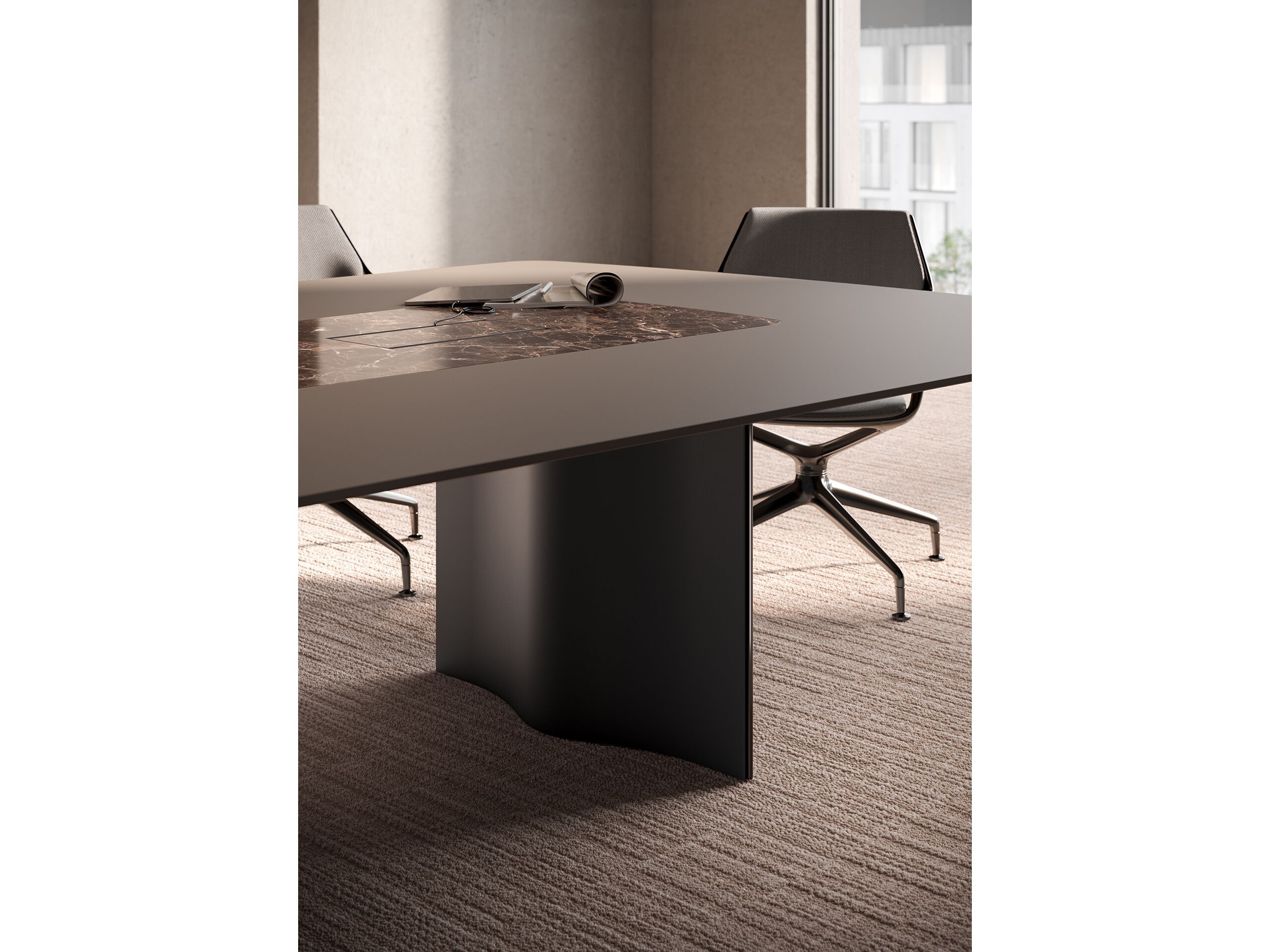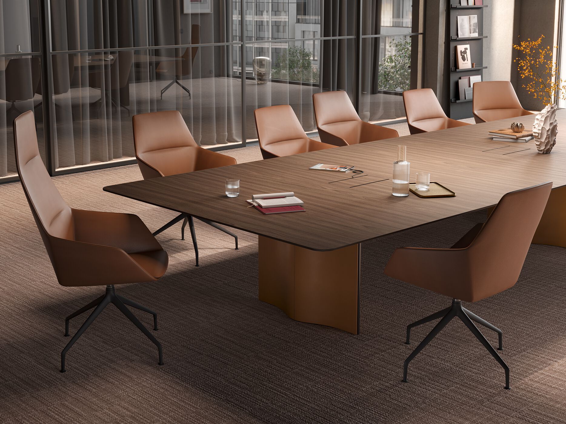 A new level of exclusivity for conference and hospitality. wave combines elegance and functionality for sophisticated conference rooms. The striking wave shape of the table legs creates a unique design, while the robust steel construction ensures maximum stability even with large dimensions. The flexible supporting structure, including cable guide rail, allows for a wide range of table shapes and numerous customisation options.