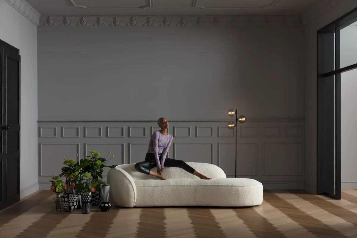 Fashionable cream colour: the neutral tone of the chaise longue is perfect for any make-over with cushions and blankets.